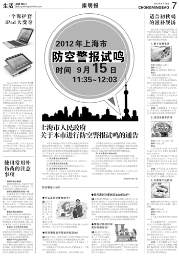 上海市人民政府关于本市进行防空警报试鸣的通告