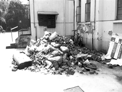 有市民反映,上个月其在西门北村56幢后面看到的大量建筑垃圾,到现在都还没处理,于是拍下了这张照片。