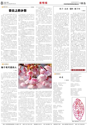 “皮”,音同“疲塌懒惰”的“疲”,阳平调。“皮”作为后字,在“边皮”、“薄皮棺材”以及“外包皮”中,连读为阳去调而成为“避开”的“避”音。“皮”在崇明话里,可以作量词,相当于普通话里的“层”,如说“一皮砖头”、“瓦一皮一皮幢上去”。“边避”音的“边皮”,指边角,如说“木板浪解下来两块边皮,蛮好派派用场勒”、“夷是拿地里个边皮裁种到家个特”。“薄皮棺材”,音“薄避棺材”,指薄得只是像一层皮的棺材。“外包皮衣裳”、“外包皮裤子”的“皮”,一般读本调音同“疲”,但是,“外包皮要脱下来换特”里的“外包皮”,常常被人读成“外包避”。