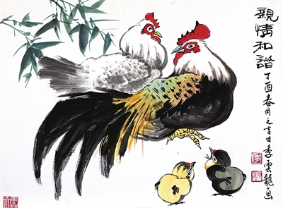 国画《亲情和谐》