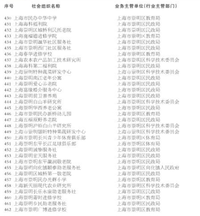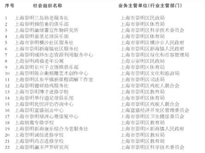 根据国务院《社会团体登记管理条例》第31条、《民办非企业单位登记管理暂行条例》第23条规定,上海市崇明区民政局依法对本区符合条件的145家社会团体、462家民办非企业单位实施年度检查,现将年检结果分期予以公告。