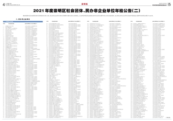 2021年度崇明区社会团体、民办非企业单位年检公告(二)