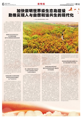 加快崇明世界级生态岛建设 助推实现人与自然和谐共生的现代化