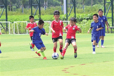 比赛中小球员们活力四射,在绿茵场上挥洒汗水、奋力拼搏。带球、停球、传球、过人、射门……球员们配合默契、对抗激烈,一次次扣人心弦的角逐不断上演,引得现场欢呼声不断。
