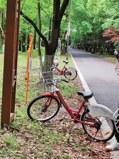 景区内的单车骑行一直以来很受游客的欢迎,游客可以骑着单车欣赏沿途的美景,感受景区内的鸟语花香。但这个过程中,有少数游客却存在着使用单车后不按规定停放的现象。记者发现,有些单车不是“横”在马路间,就是“飞”进绿化带。这些不文明行为,可能会给他人的出行和景区内的道路交通安全带来影响,还会破坏景区的绿化。在此,景区呼吁单车使用者能加强规范停放的意识,用好单车后应主动停在规定位置。