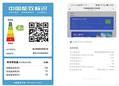 其中能效信息码(二维码)主要方便消费者核实用能产品的基本信息,方便监管部门查验是否虚标参数等作用。