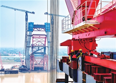本报讯 日前,沪渝蓉高铁崇启公铁长江大桥迎来重要施工进展,主通航孔首吊钢梁成功架设,标志着大桥主通航孔桥正式迈入上部结构施工阶段。