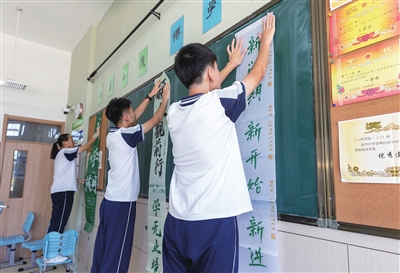 走进崇明中学,清扫、整理工作正在有序开展。在教室里,学生们分工协作,认真擦拭黑板、清洁桌椅与地面,还精心布置起装饰摆件,让教室提前洋溢起温馨的学习氛围。