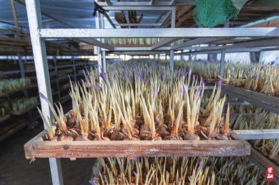 2024年,永乐村全村有藏红花种植面积700亩,年产值达2000余万元。种植藏红花不仅使全村男女老少纷纷实现了家门口就业,藏红花更成了村里的“致富花”。
